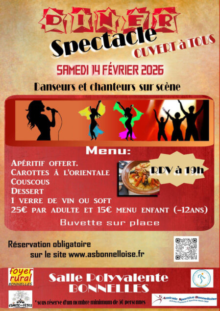 Nous avons été contraints de reporter au samedi 14 février, notre dîner spectacle (prévu le 10 janvier).